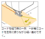 このモードに設定してコントローラーを踏むと、一針だけ縫った後自動的に止まります。コード等を縫い付ける時も簡単。その他にもアイデア次第でいろいろなシーンに活用できる、とっても便利な機能です。