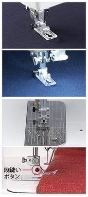 ◎縫い乱れを防ぐために「段縫いボタン」機能を備えています。